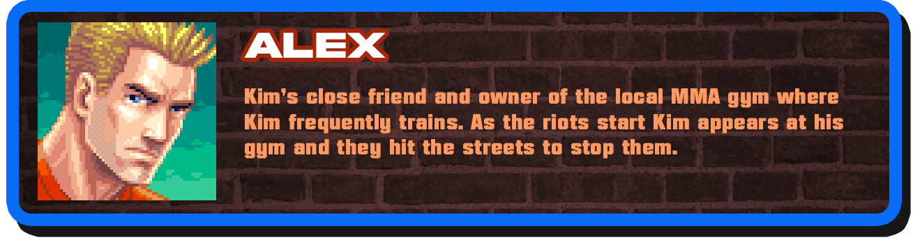 Riots suddenly break out across all burros of the city, as street gangs go wild to take control over their territory. Kim, who was recently suspended from the police force for unsanctioned investigations into the mysterious death of her father, appears at the MMA gym of her best friend Alex, and they take to the streets to fight their way through the city, to find the cause of the riots and put an end to the chaos.